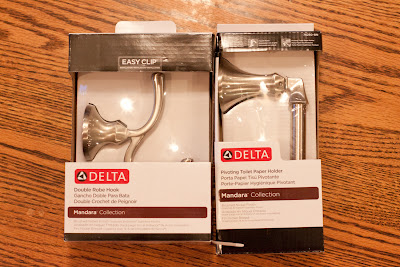 Day 12 - Over the weekend Cody had a mishap in our partially finished bathroom downstairs. All the plumbing is there, but the finishing touches like toilet paper holders and towel bars are missing. Somehow, the entire roll of toilet paper fell into the toilet while he was trying to wipe. Then other things ended up on him while he tried to solve the problem. So now that you know the back story you can appreciate how excited I was about todays gift of a toilet paper holder for the bathroom.